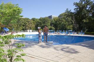 Ausstattung: Garten, Pool, integrierter Kinderpool. Liegen, Schirme, Handtücher am Pool (inkl.), Liegen, Schirme am Strand (geg. Geb.), Pool-Bar, Sonnenterrasse. Empfangshalle, Rezeption, Lobby-Bar, WLAN, Safe (geg. Geb.), TV-Lounge. 2 Restaurants (Buffet) mit Fast Food, 2 Bars, Shop, Friseur, Parkplatz (geg. Geb.). 296 Zimmer, 6 Etagen, 2 Lifte.