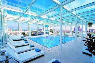 Wellness und Fitness: Größe Wellnessbereich 80 m², Schwimmbereich - gebührenfrei, Hallenbad 65 m², Saunabereich: Kinder ab 16 Jahren. Nur in Begleitung eines Erwachsenen, Dampfbad - gebührenfrei, Sauna - gebührenfrei, Ruheraum, Massagen - optional gegen Gebühr vor Ort, Beauty Center - optional gegen Gebühr vor Ort, Liegestühle - gebührenfrei, Liegestühle am Strand - gebührenfrei, Sonnenschirme am Strand - gebührenfrei